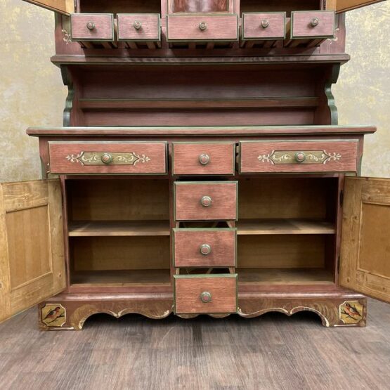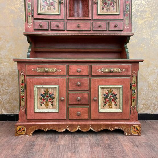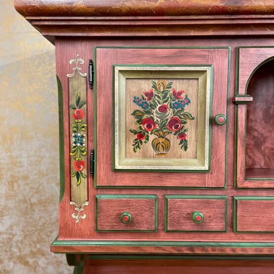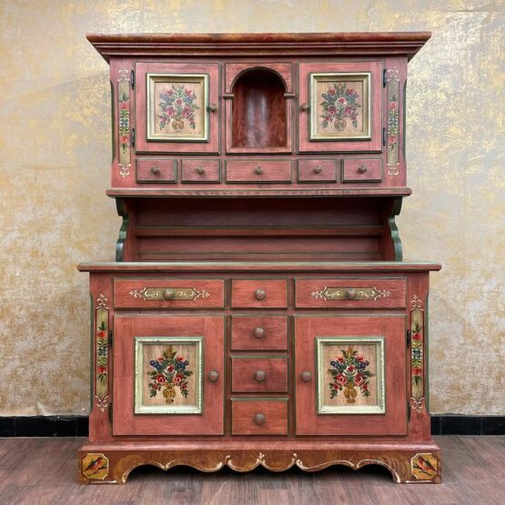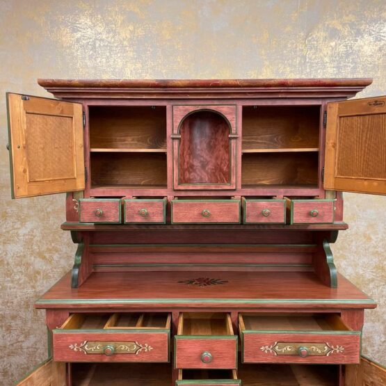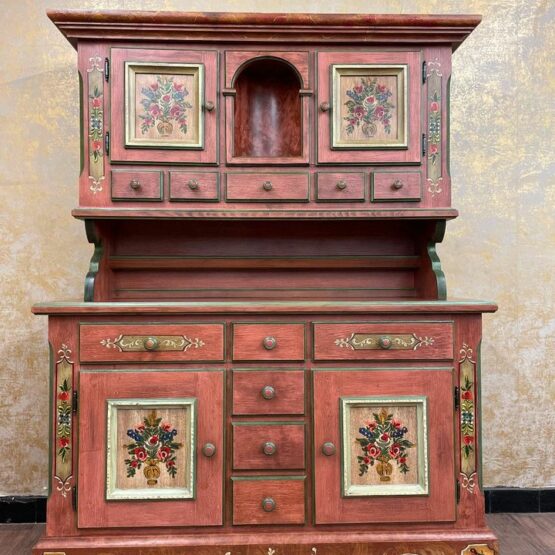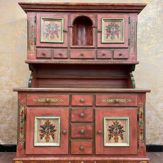 Ob als stilvoller Stauraum oder als Herzstück im Wohnraum – dieses Möbelstück bewahrt mehr als nur Ordnung. Es bewahrt ein Stück Heimat.Wunderschöner Voglauer Haushaltsschrank aus der Serie “Anno 1800”. Dieser Buffetschrank ist altrosa handbemalt und in einem ausgezeichneten Zustand. Absolut seltene Rarität.