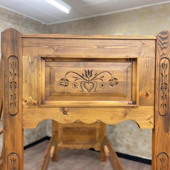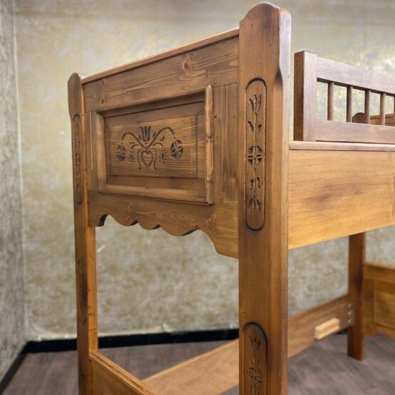 Das robuste Bett aus hochwertigem Holz bietet nicht nur sicheren Schlafplatz, sondern auch einen Hauch von ländlicher Eleganz, der in jedem Kinderzimmer eine einladende und gemütliche Atmosphäre schafft.