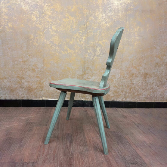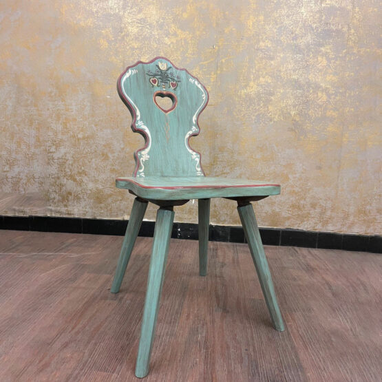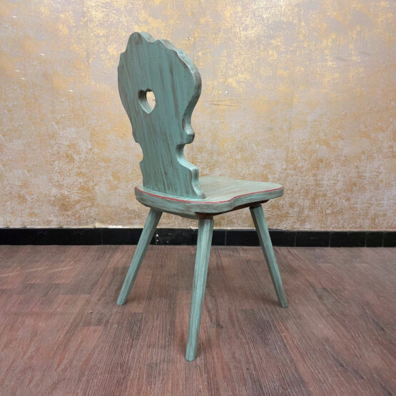 Entdecken Sie den charmanten Voglauer Landhausstuhl von Alpenland Möbel, ein wahrer Blickfang für Ihr Esszimmer. In einem nostalgischen Altblau und handbemalt, verleiht dieser Stuhl Ihrem Raum rustikalen Charme.