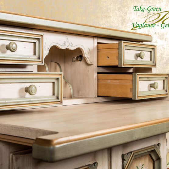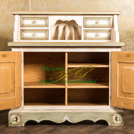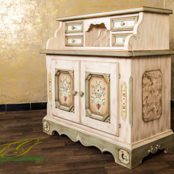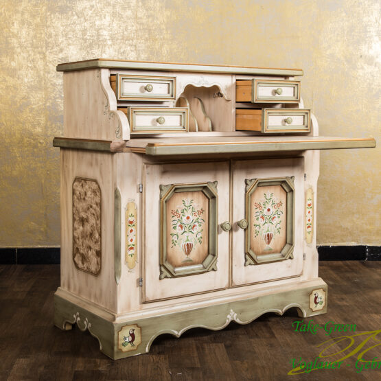 Die traditionelle Bauernmalerei verleiht diesem Sekretär seine unvergängliche Einzigartigkeit.