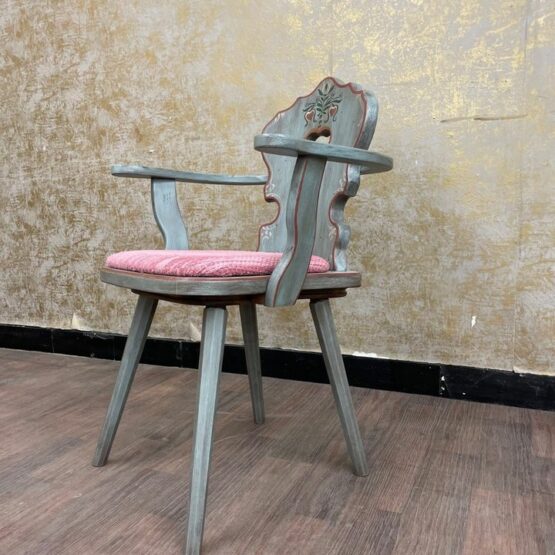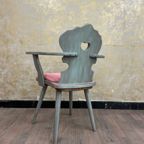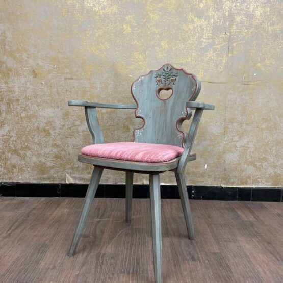 Es handelt sich hierbei um ein stilvollen Holzstuhl von höchster Qualität. Dieser Lehnenstuhl ist ein echter Hingucker für Ihr Zuhause! Altblau handbemalt.