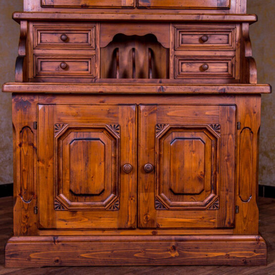 Liebevoll restauriert, sorgt dieses Möbelstück mit seinem dunklen Holzton für behagliche Landhausatmosphäre.