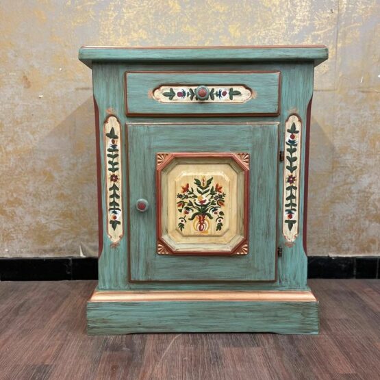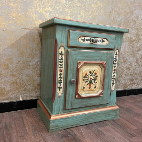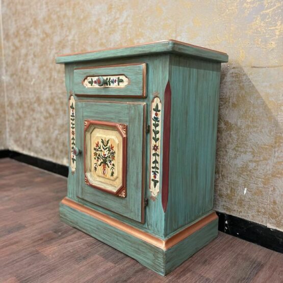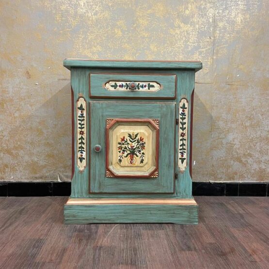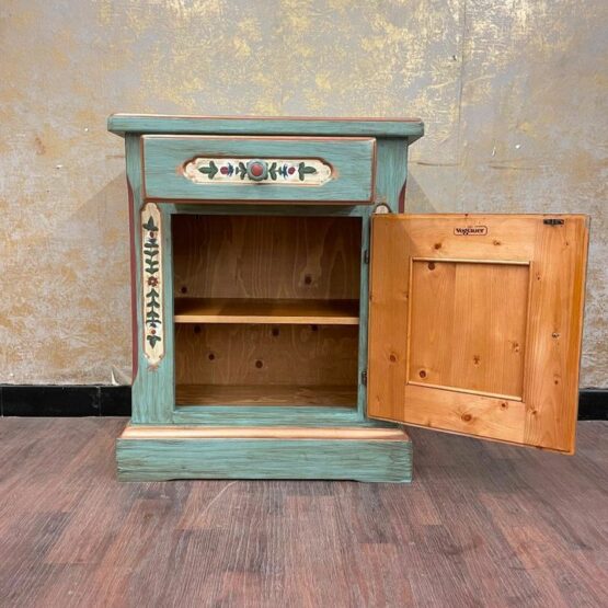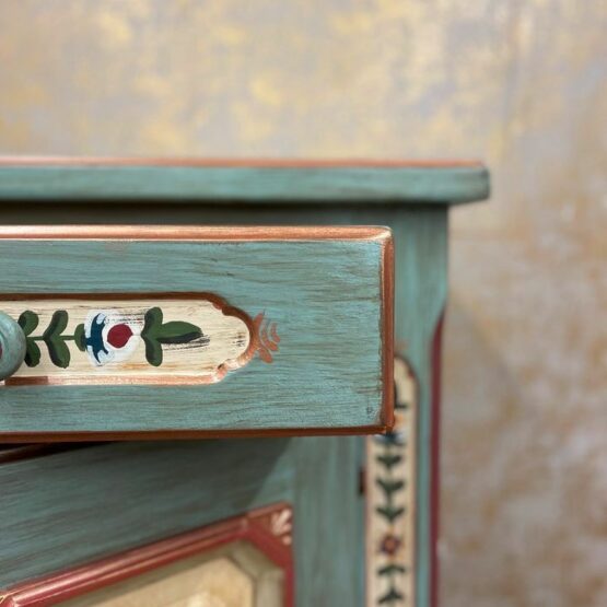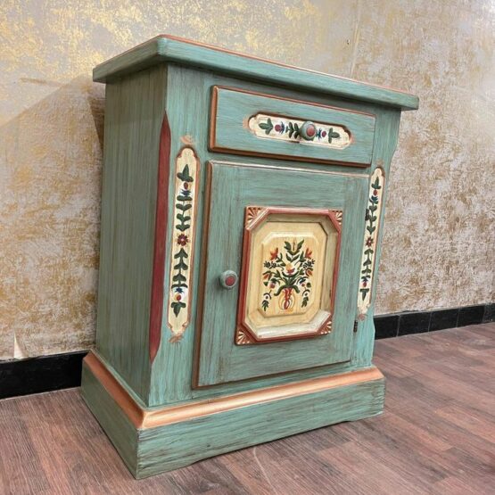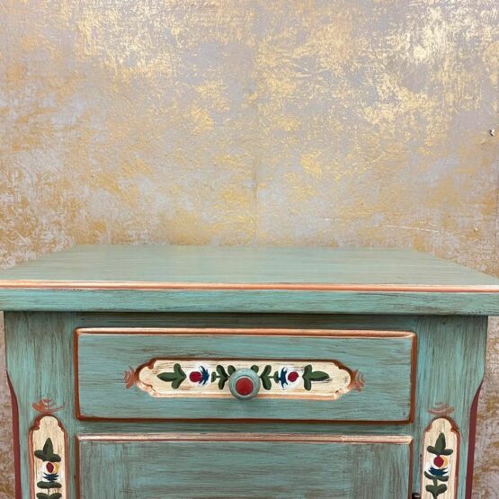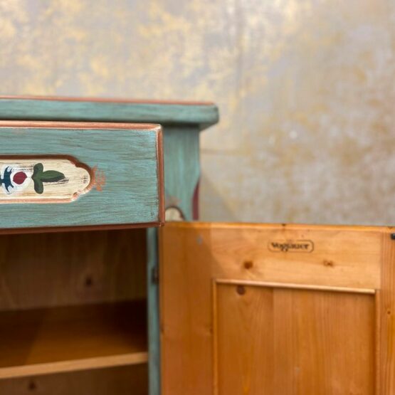 Gefertigt aus massivem Holz und liebevoll restauriert, erstrahlt sie in neuer Frische, ohne ihren authentischen Charakter zu verlieren. Zarte Bauernmalerei, harmonische Farbnuancen und sanft geschwungene Linien verleihen ihr eine warme Ausstrahlung.