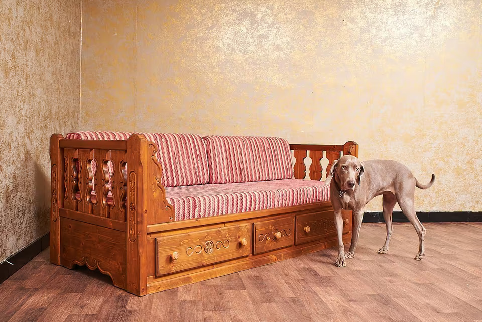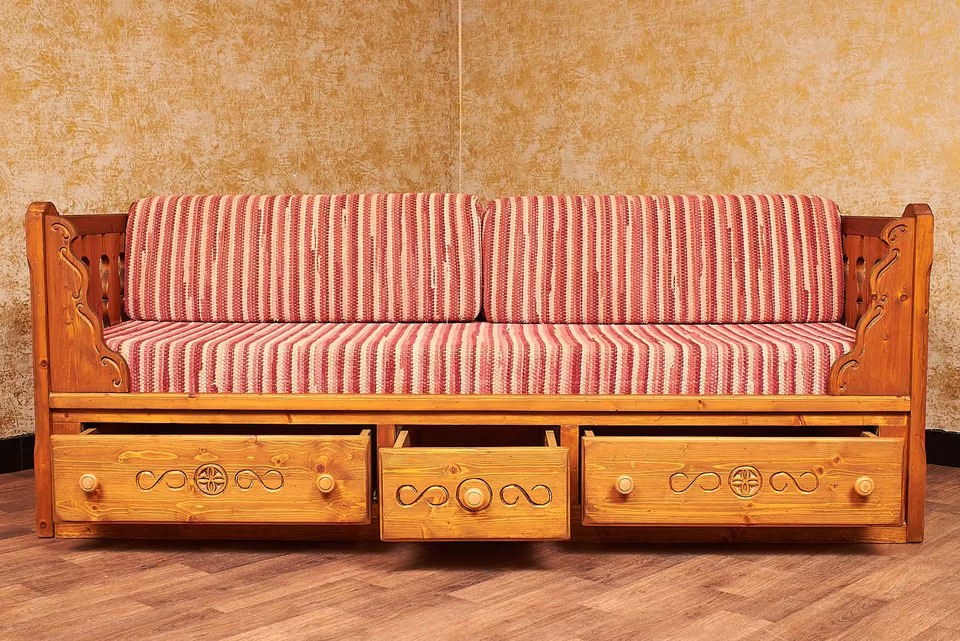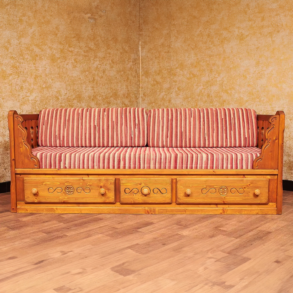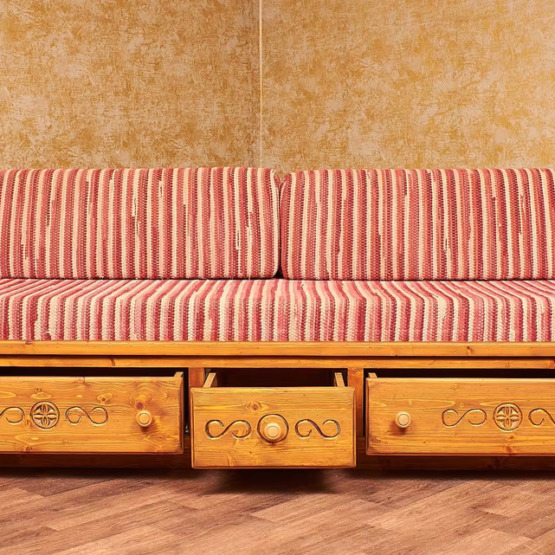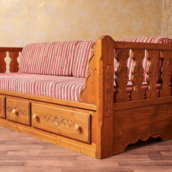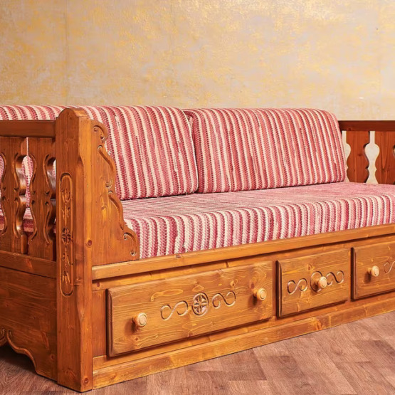 Wie ein Platz aus Kindheitstagen – dieses originale Bauernsofa der Serie „Anno 1600“ verbindet rustikale Gemütlichkeit mit praktischer Raffinesse.