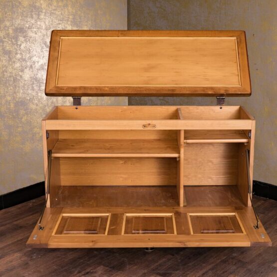 Die Bauerntruhe aus der Serie „Anno 1700“ von Voglauer überzeugt mit praktischer Funktionalität und traditionellem Charme.