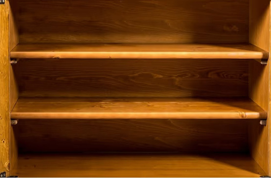 Hinter den zwei Türen befinden sich drei großzügige Regalfächer, die viel Stauraum bieten.
