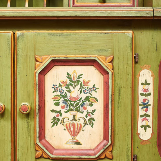 Dieser Sekretär im Landhausstil von Voglauer aus der Serie “Anno 1700” überzeugt durch seine schöne altgrüne Farbgebung und das hochwertige, massive Fichtenholz.