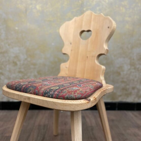 Ein erstklassiger und hochwertig gearbeiteter Bauernstuhl aus der Voglauer-Serie “Anno 1900” mit der typischen Herzform im Rücken.