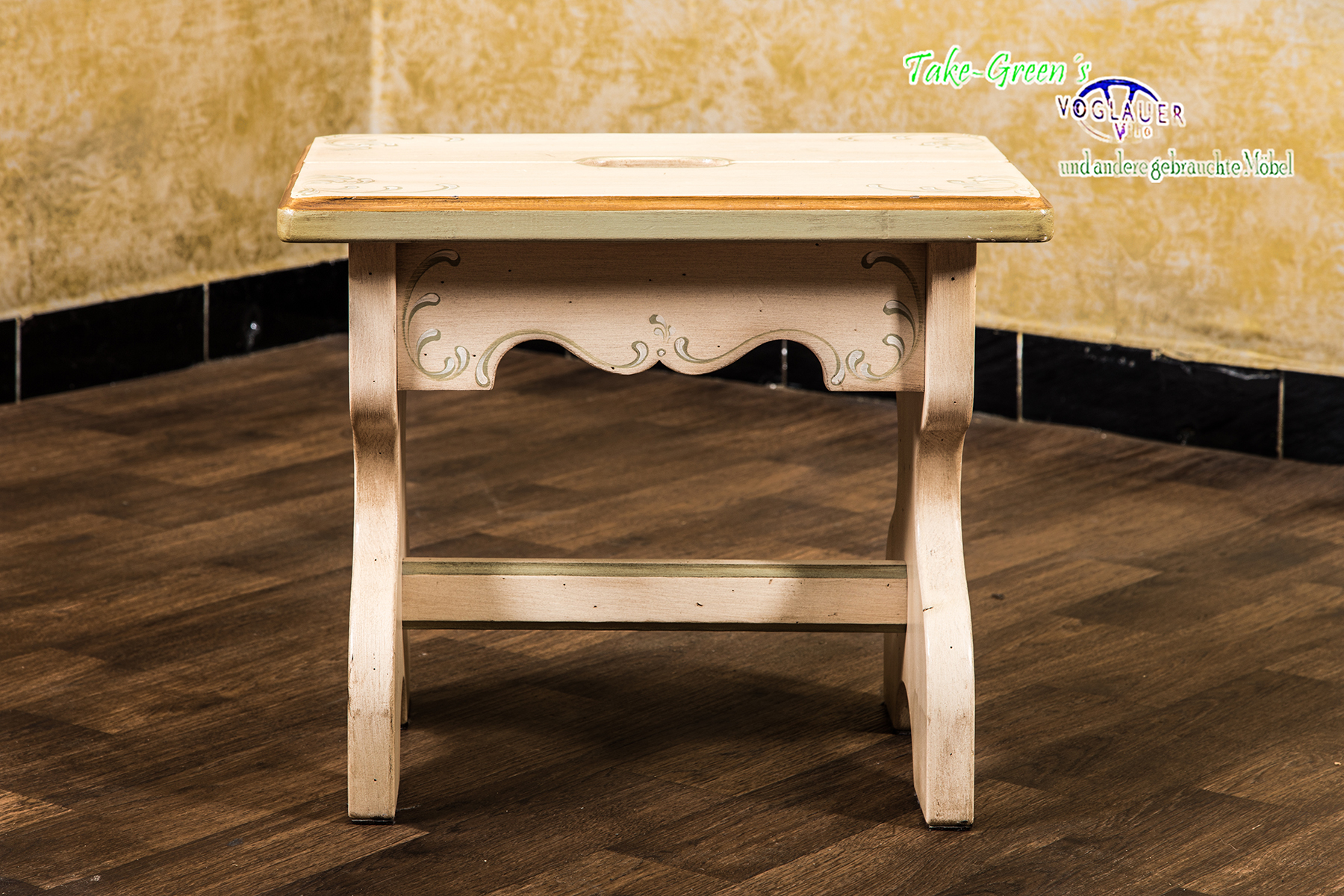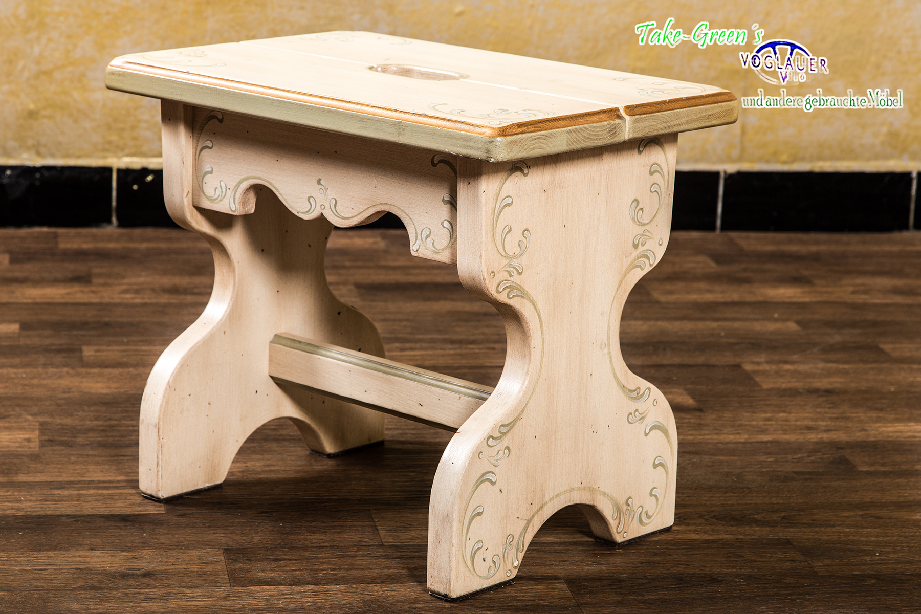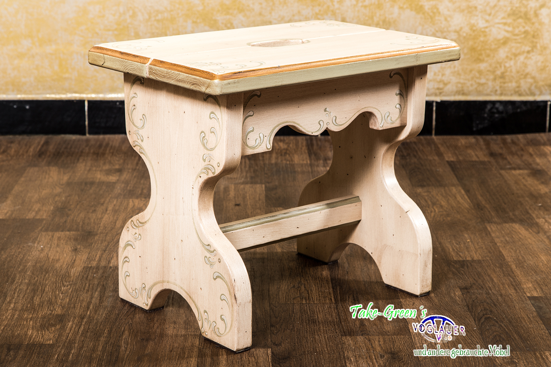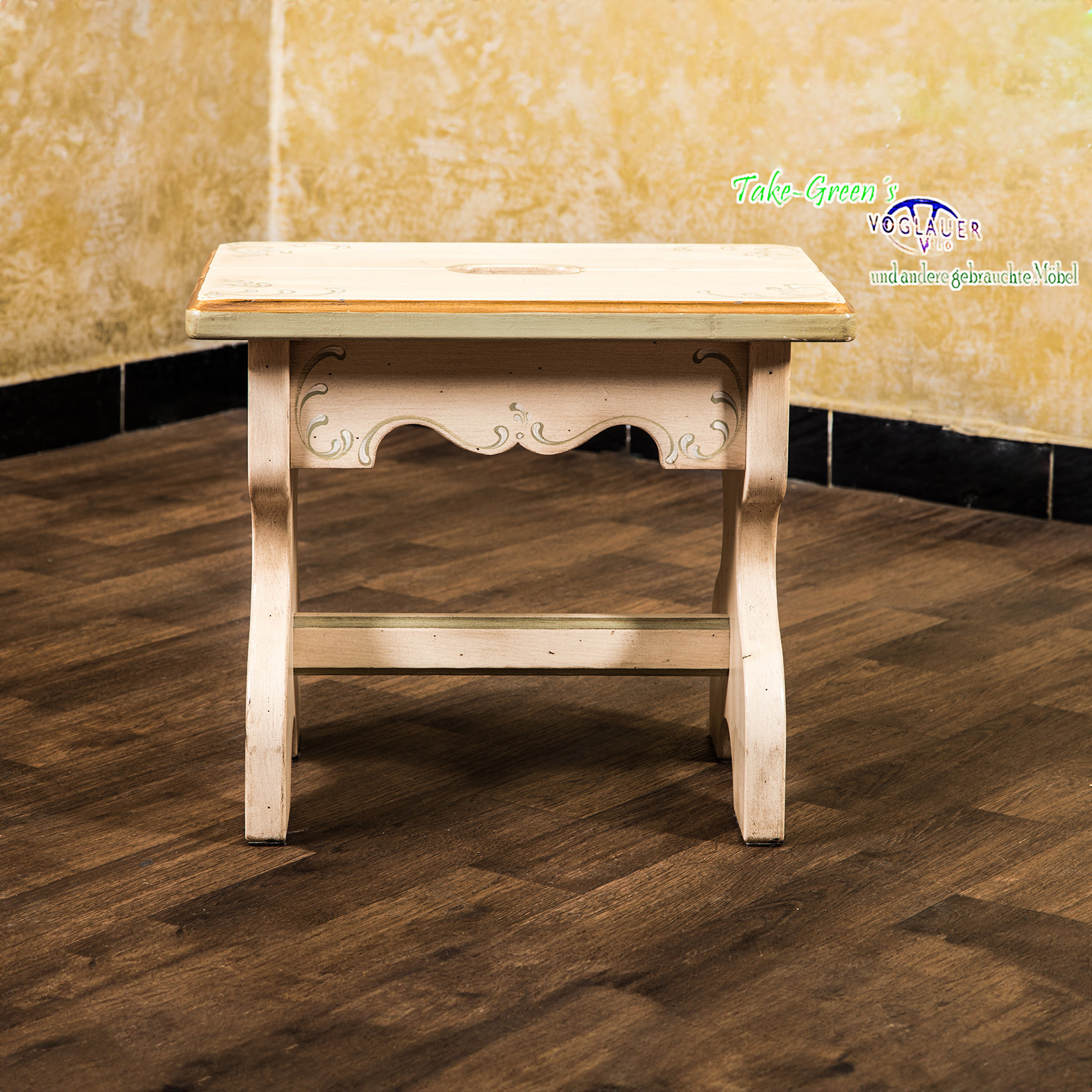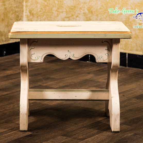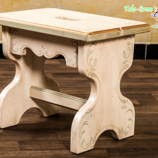 Unaufdringlich, aber mit Charakter: Dieser handbemalte Voglauer Hocker bringt den Charme ländlicher Wohnkultur in jede Ecke des Hauses.