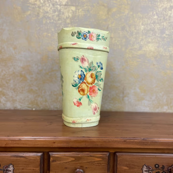 Ob als stilvoller Schirmständer oder dekoratives Element – dieses liebevoll gestaltete Stück bringt ländliche Gemütlichkeit und feinen Handwerksflair in Ihren Eingangsbereich.