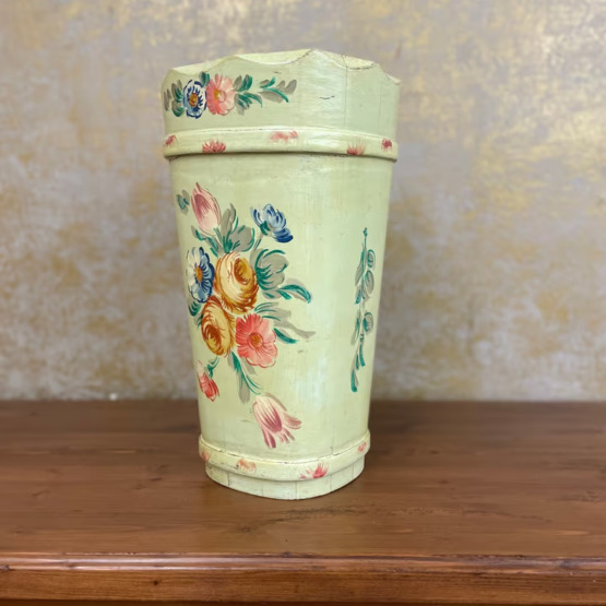 Dieser traditionelle Sechter von Voglauer überzeugt durch seine zarte Altgrün-Färbung und die aufwendigen, von Hand gemalten Verzierungen. Die floralen Motive verleihen ihm eine besonders charmante Ausstrahlung und machen ihn zu einem dekorativen Blickfang mit praktischem Nutzen.