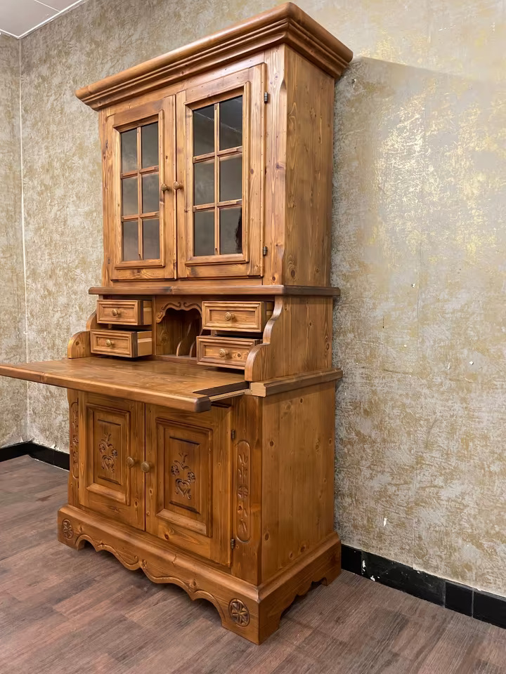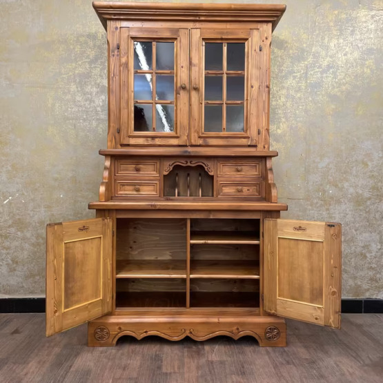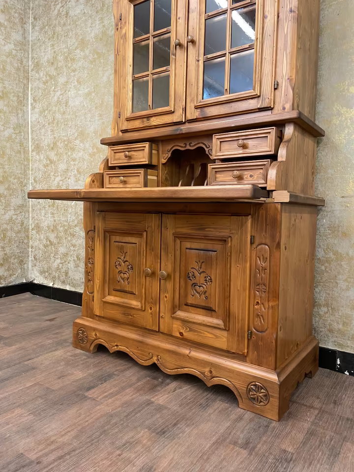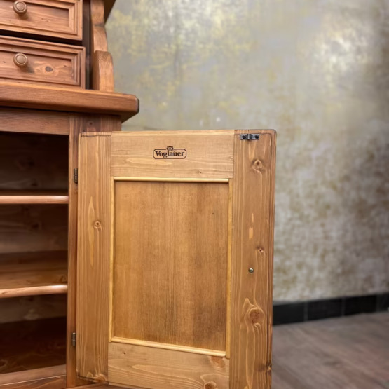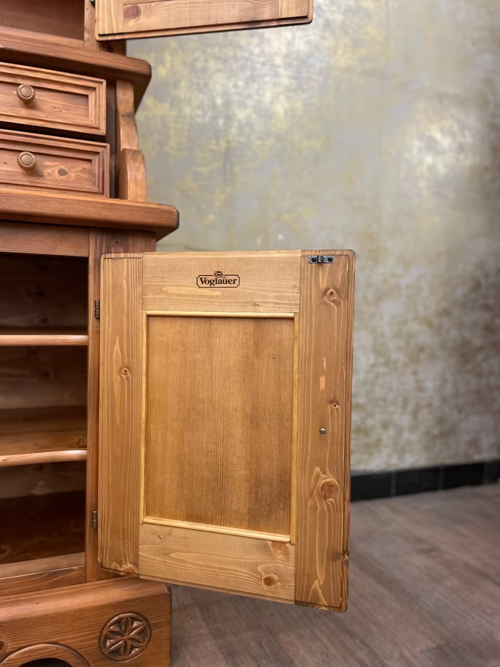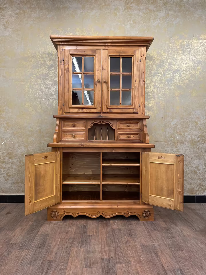 Ein Möbel wie aus der guten Stube von einst: Dieser original Voglauer Sekretär mit Vitrinenaufsatz vereint praktischen Stauraum mit ländlichem Charme.