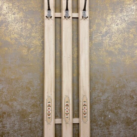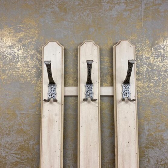 Das kunstvoll verzierte Massivholz verleiht jedem Flur eine warme, einladende Atmosphäre. Stabile Metallhaken bieten Platz für Jacken, Mäntel und Accessoires – praktisch und stilvoll zugleich.