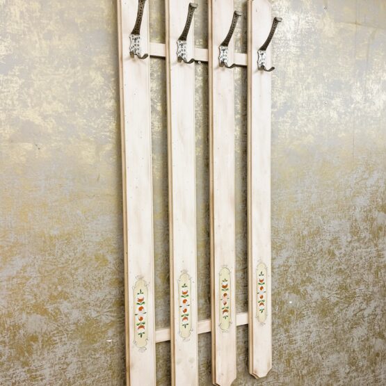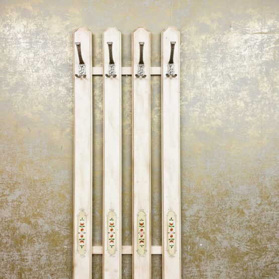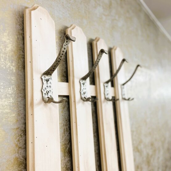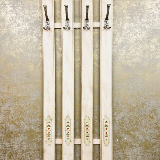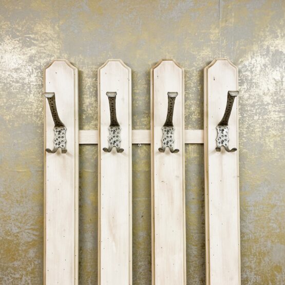 Eine ausgefallene Garderobe im Landhausstil aus dem Hause Voglauer. Mit den schmiedeeisernen Haken an den vier Streben wird die Wandgarderobe zum echten Blickfang in Ihrer Diele und sorgt gleichzeitig für eine stabile Aufhängemöglichkeit für Jacken, Mäntel & Co.